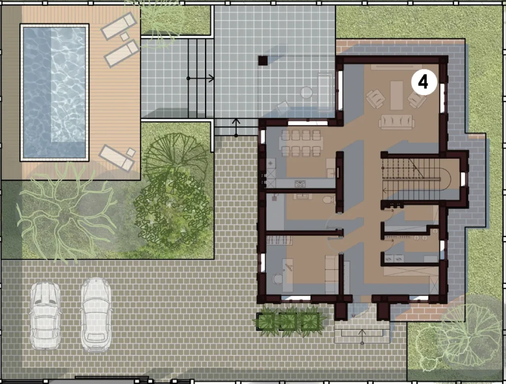Вікна та вітражі – металопластикові – 6-камерні, мультифункціональні з енергозбереженням взимку та сонцезахистом влітку, в зоні патіо – розсувні системи