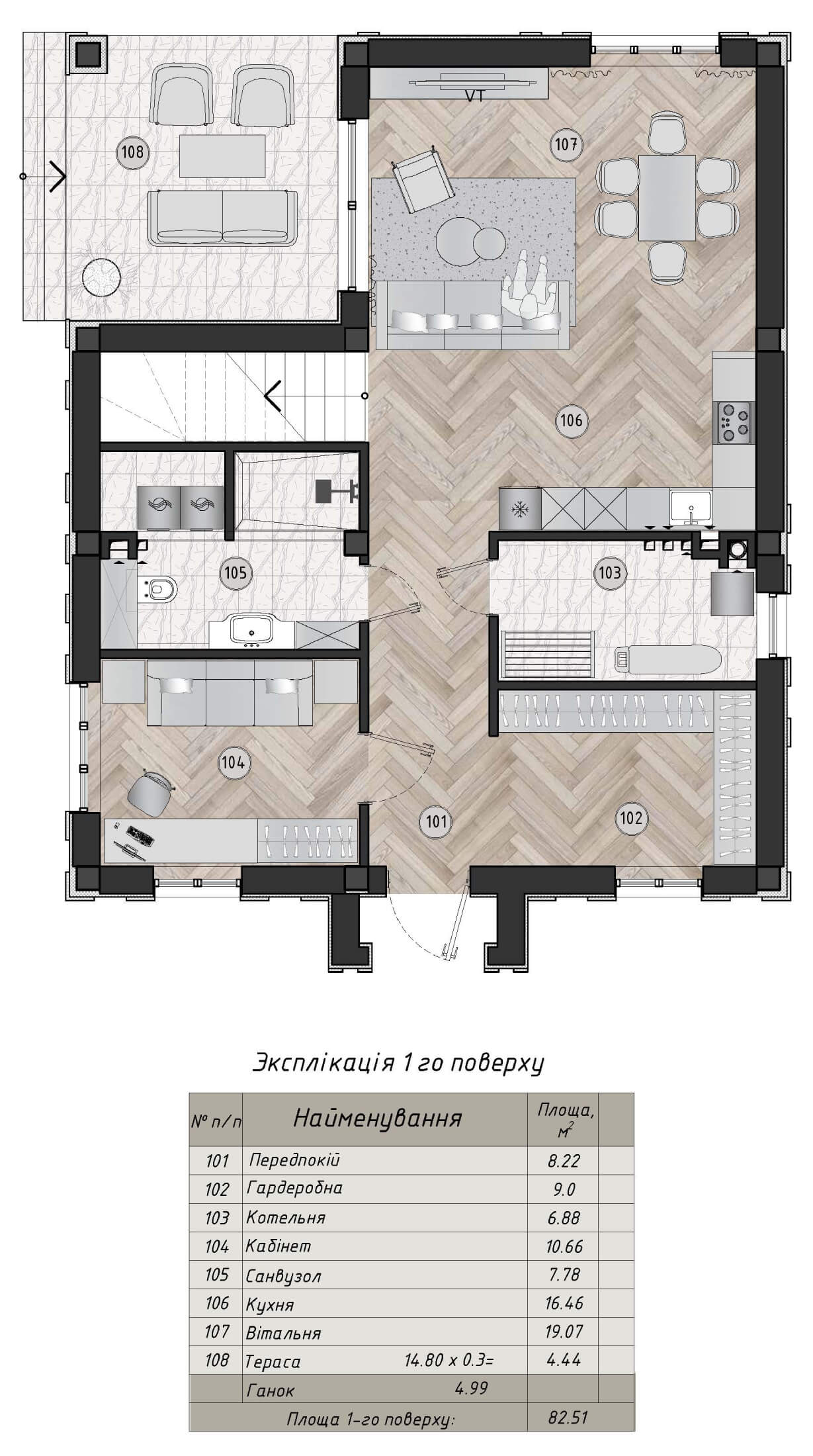 Вікна та вітражі – металопластикові – 6-камерні, мультифункціональні з енергозбереженням взимку та сонцезахистом влітку, в зоні патіо – розсувні системи